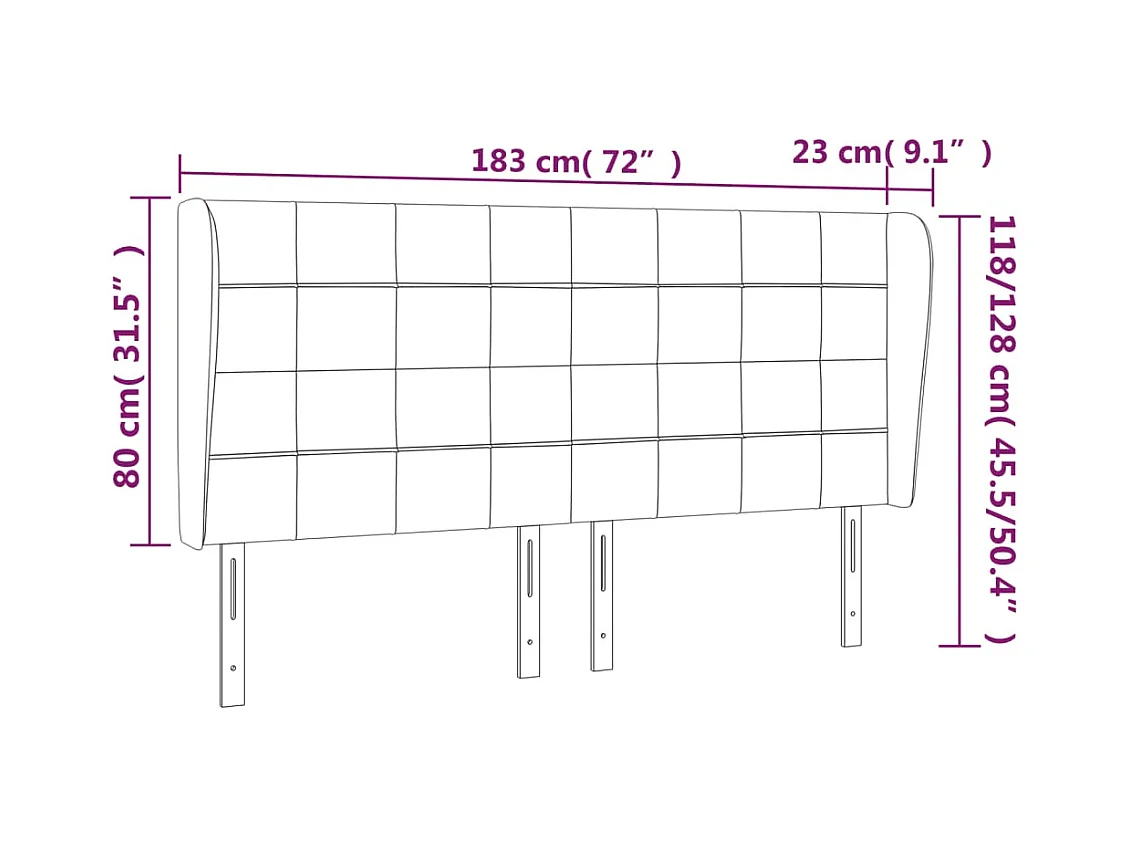 Cabecero | Cabezal de Cama | Mueble cabecero con orejas de terciopelo azul oscuro 183x23x118/128 cm