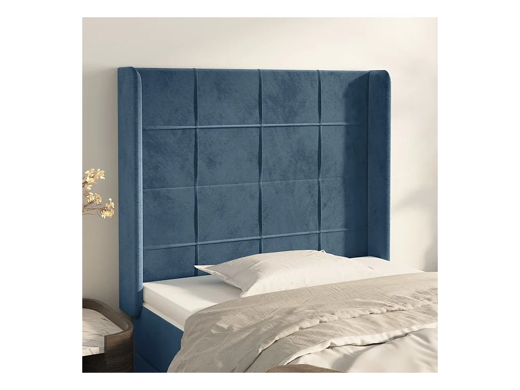 Cabecero | Cabezal de Cama | Mueble cabecero con orejas de terciopelo azul oscuro 93x16x118/128 cm