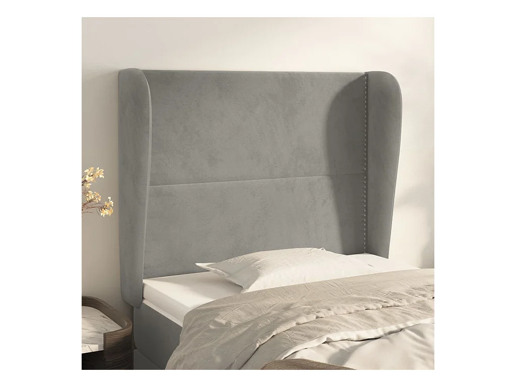 Cabecero | Cabezal de Cama | Mueble cabecero con orejas de terciopelo gris claro 93x23x118/128 cm