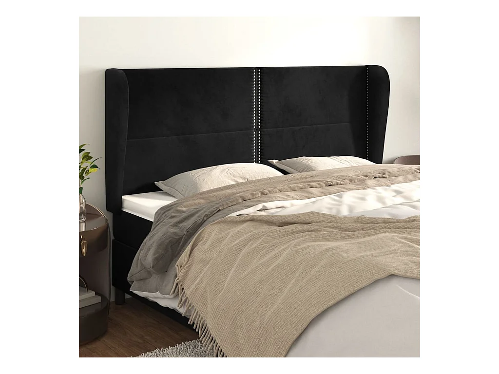 Cabecero | Cabezal de Cama | Mueble cabecero con orejas de terciopelo negro 183x16x118/128 cm