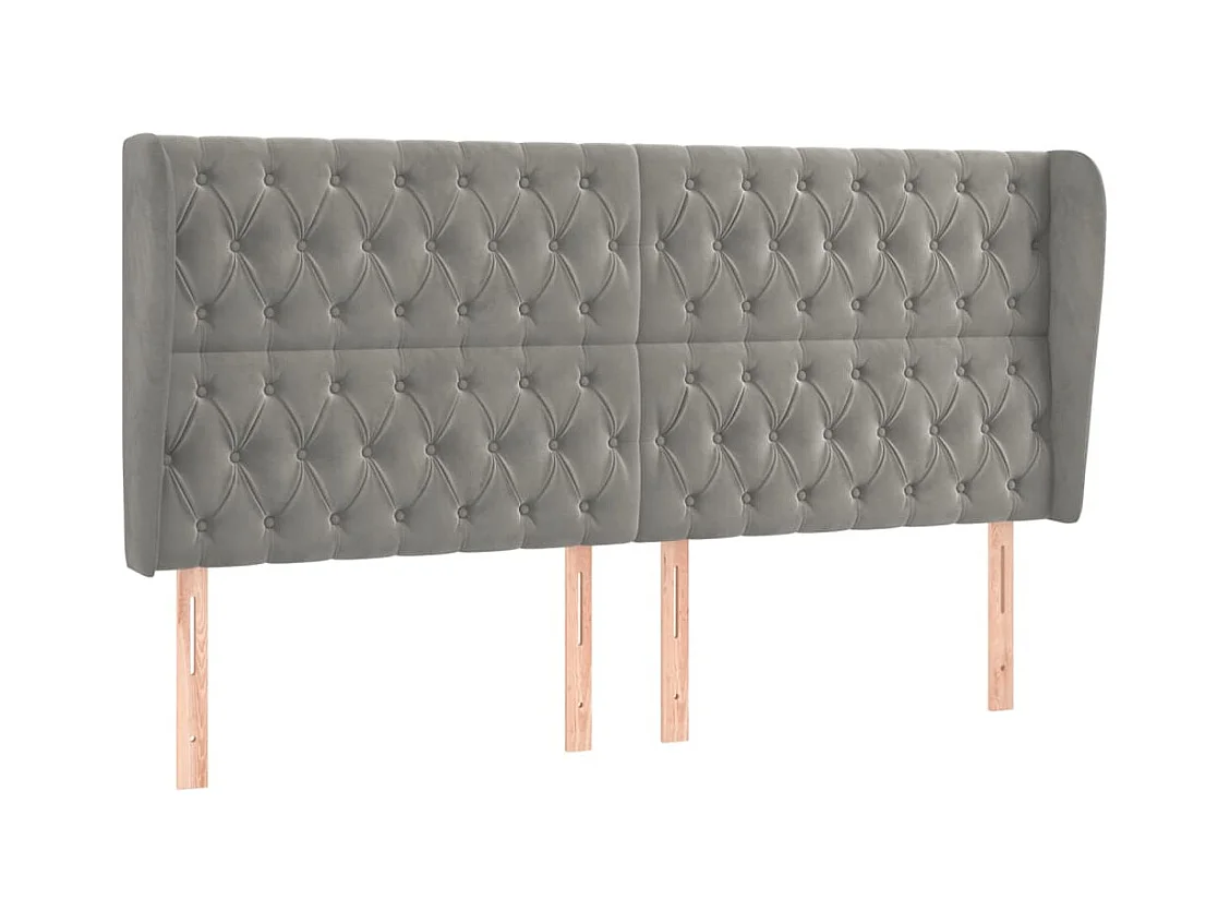 Cabecero | Cabezal de Cama | Mueble cabecero con orejas de terciopelo gris claro 183x16x118/128 cm