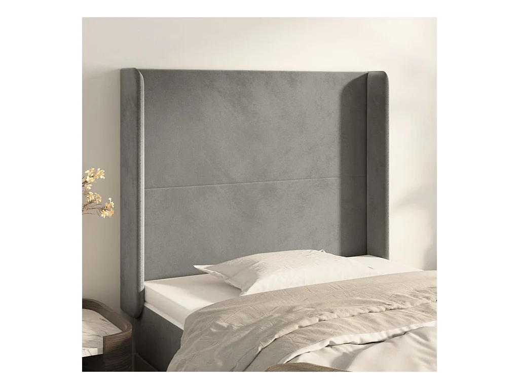 Cabecero | Cabezal de Cama | Mueble cabecero con orejas de terciopelo gris claro 93x16x118/128 cm