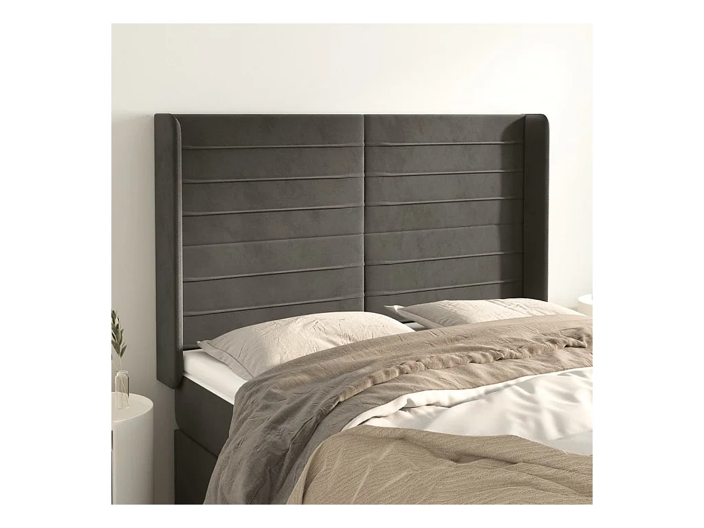 Cabecero | Cabezal de Cama | Mueble cabecero con orejas de terciopelo gris oscuro 147x16x118/128 cm