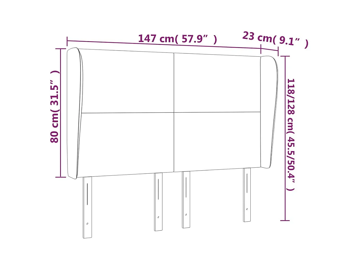 Cabecero | Cabezal de Cama | Mueble cabecero con orejas de terciopelo gris oscuro 147x23x118/128 cm