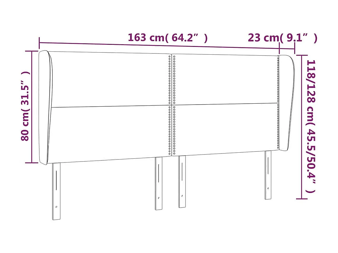 Cabecero | Cabezal de Cama | Mueble cabecero con orejas de terciopelo gris oscuro 163x23x118/128 cm