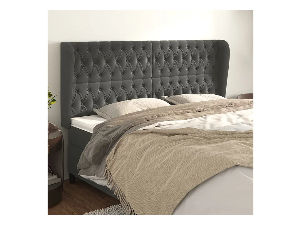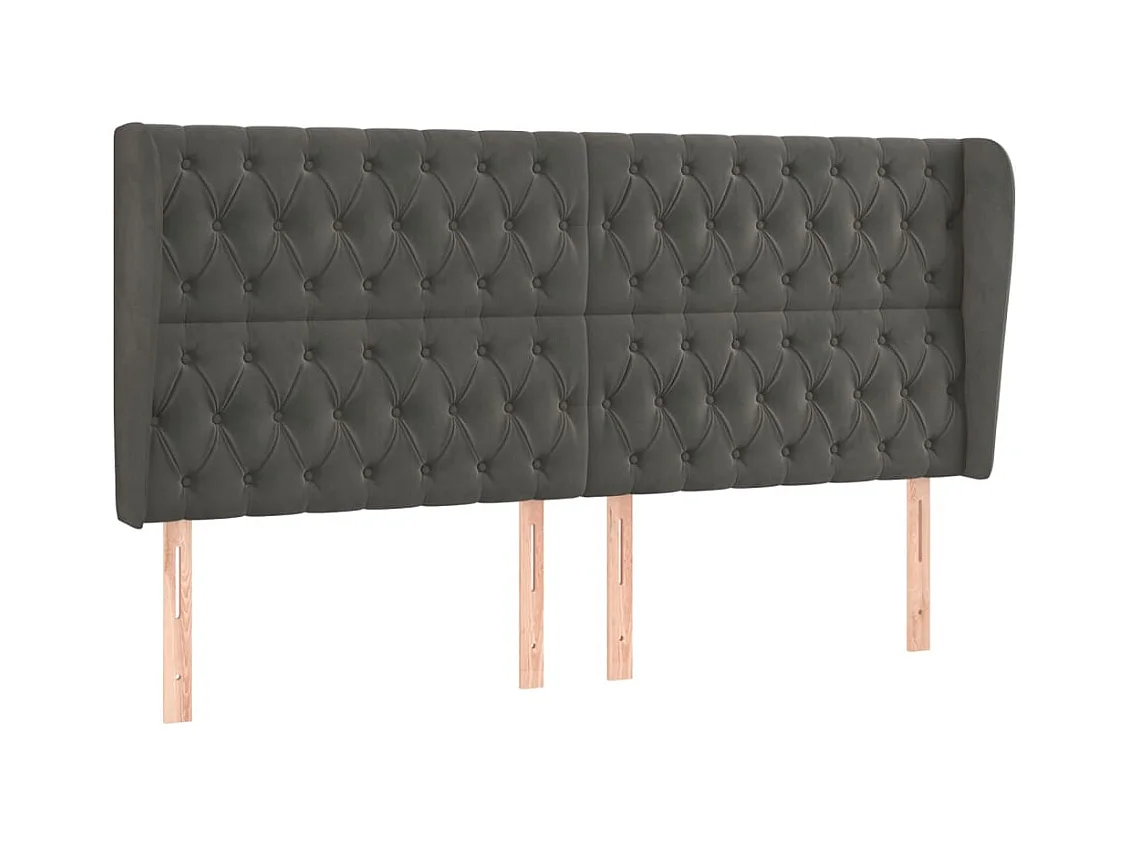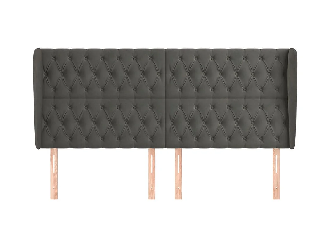 Cabecero | Cabezal de Cama | Mueble cabecero con orejas de terciopelo gris oscuro 183x23x118/128 cm