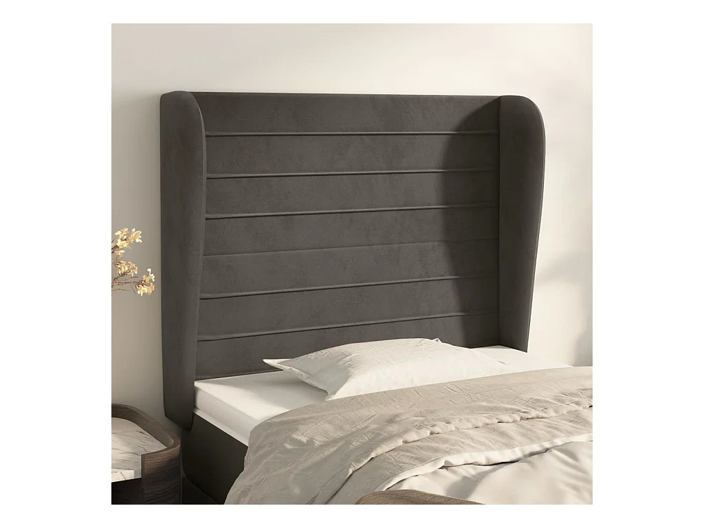Cabecero | Cabezal de Cama | Mueble cabecero con orejas de terciopelo gris oscuro 93x23x118/128 cm
