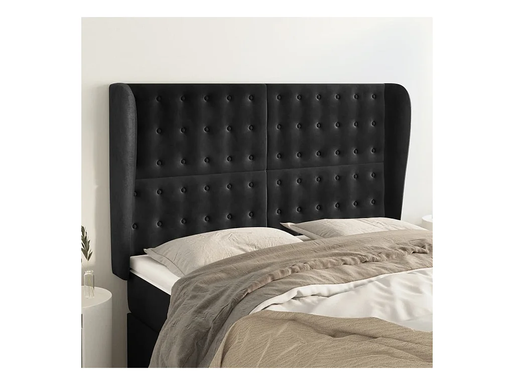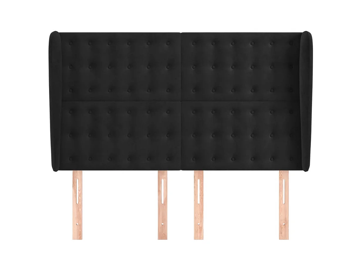 Cabecero | Cabezal de Cama | Mueble cabecero con orejas de terciopelo negro 147x23x118/128 cm