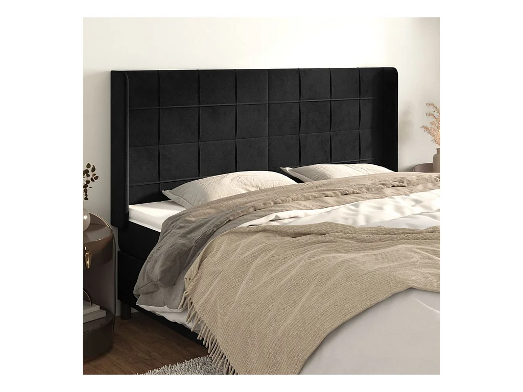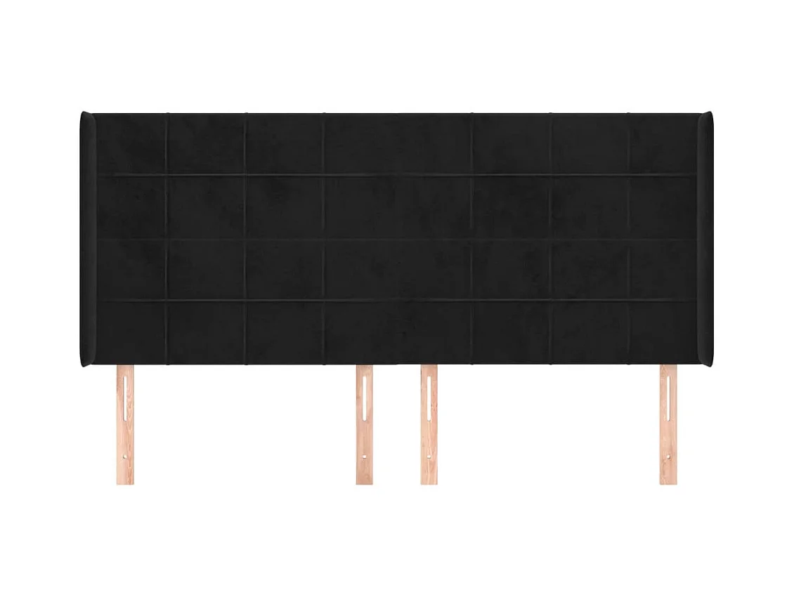 Cabecero | Cabezal de Cama | Mueble cabecero con orejas de terciopelo negro 203x16x118/128 cm