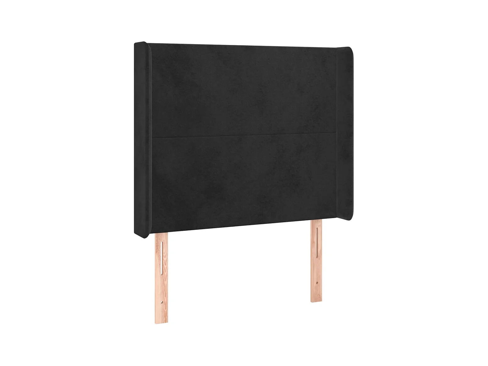 Cabecero | Cabezal de Cama | Mueble cabecero con orejas de terciopelo negro 93x16x118/128 cm