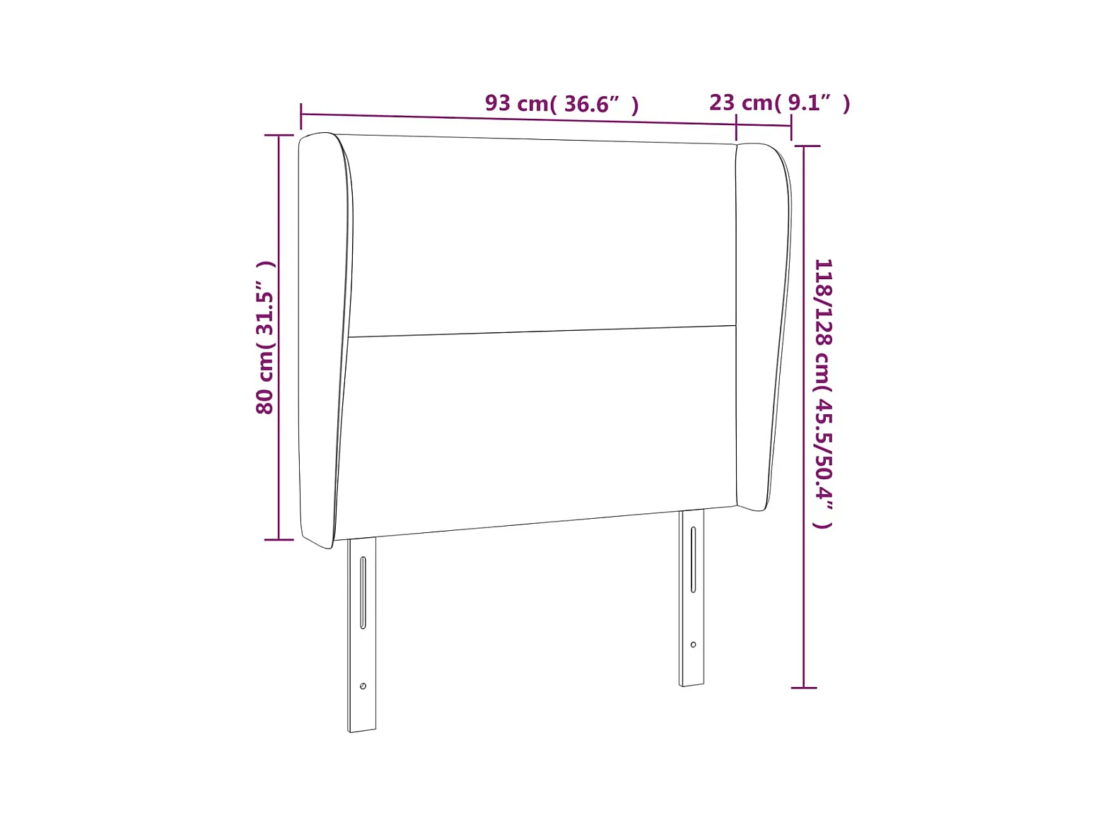 Cabecero | Cabezal de Cama | Mueble cabecero con orejas de terciopelo negro 93x23x118/128 cm