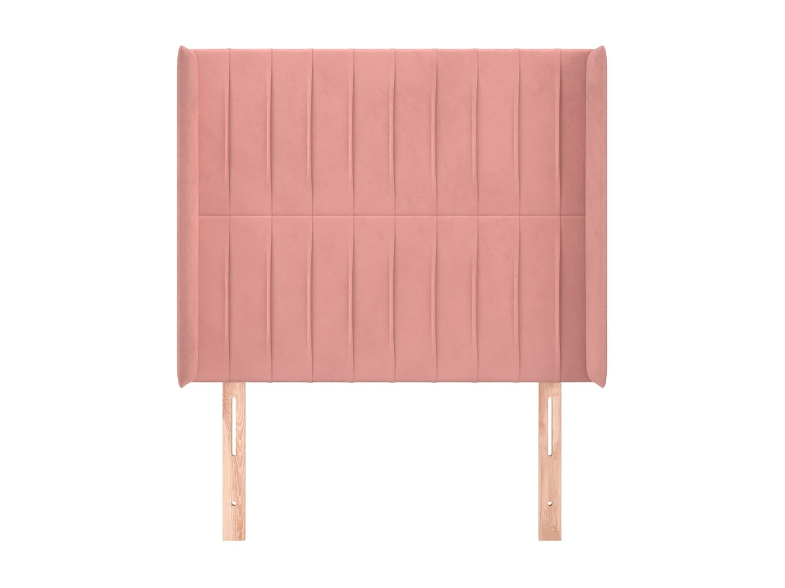 Cabecero | Cabezal de Cama | Mueble cabecero con orejas de terciopelo rosa 83x16x118/128 cm