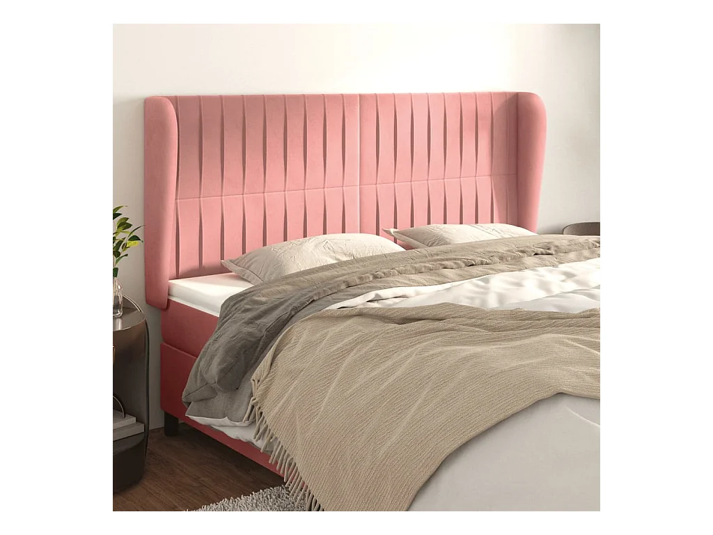Cabecero | Cabezal de Cama | Mueble cabecero con orejas de terciopelo rosa 183x23x118/128 cm
