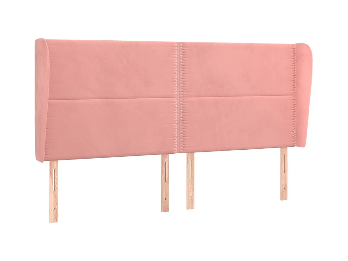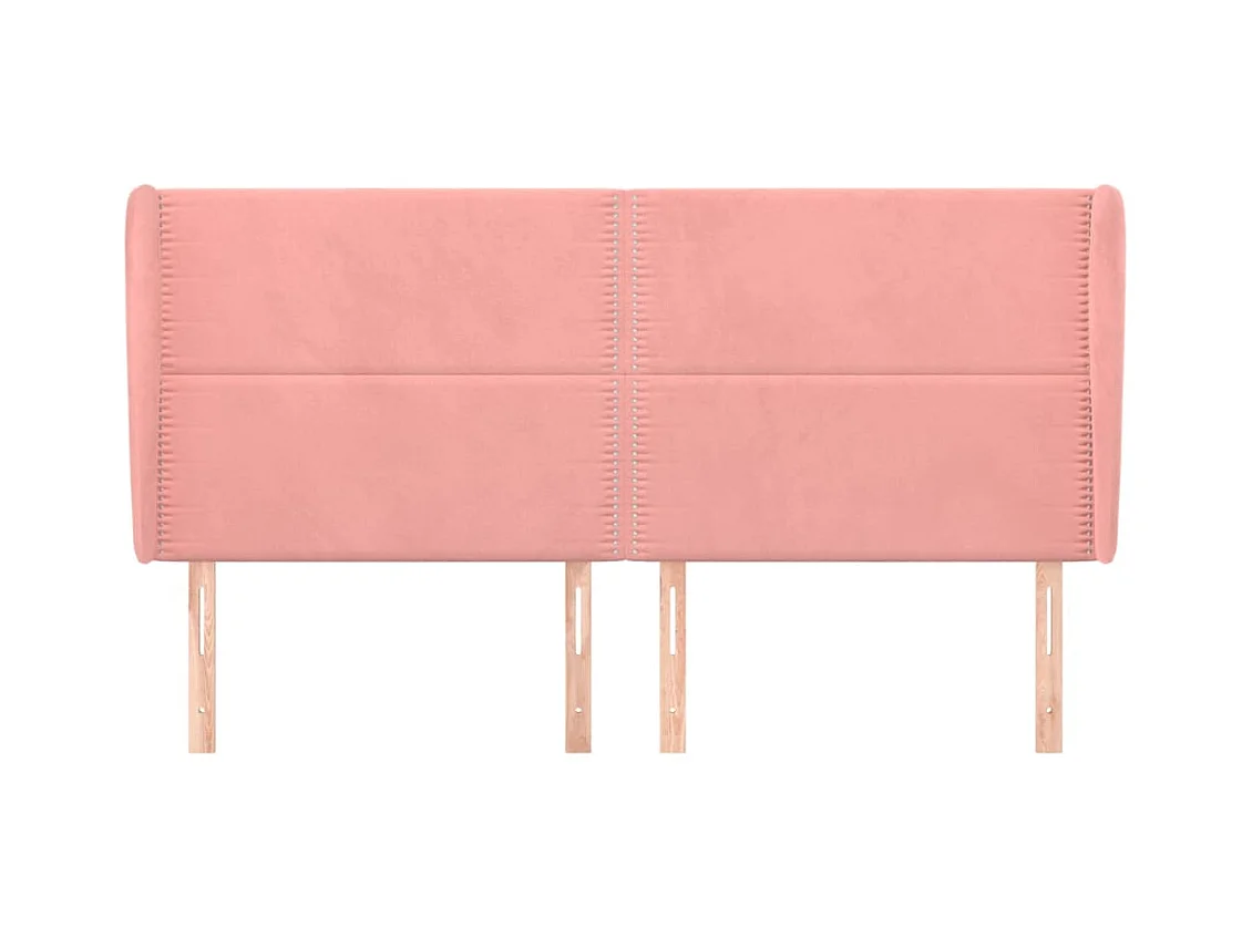 Cabecero | Cabezal de Cama | Mueble cabecero con orejas de terciopelo rosa 183x23x118/128 cm