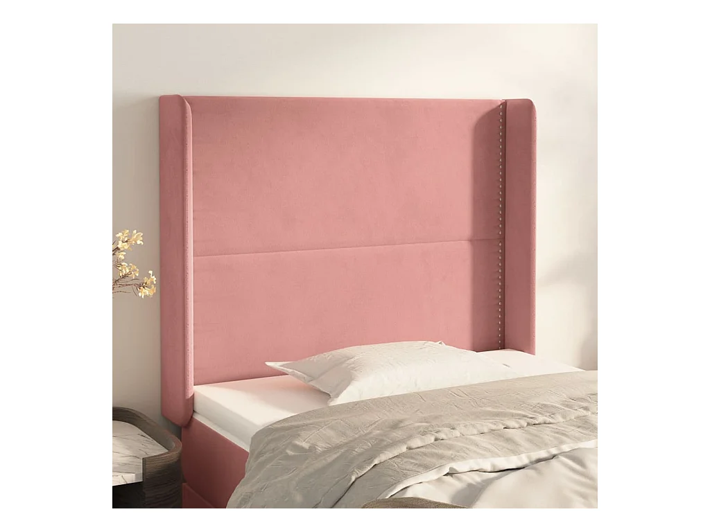 Cabecero | Cabezal de Cama | Mueble cabecero con orejas de terciopelo rosa 83x16x118/128 cm