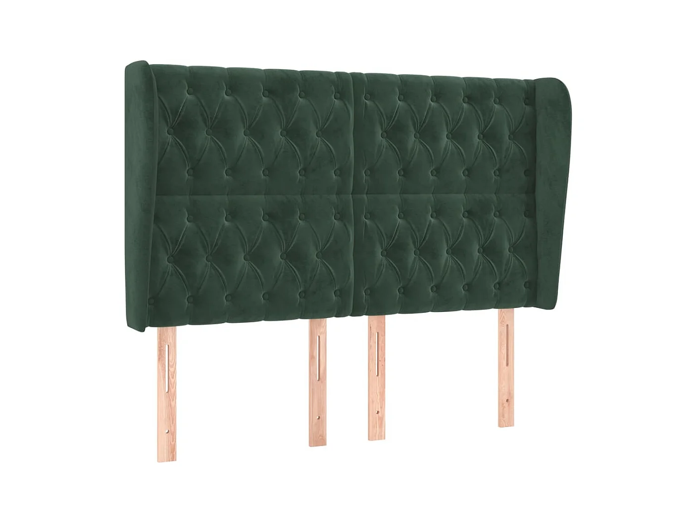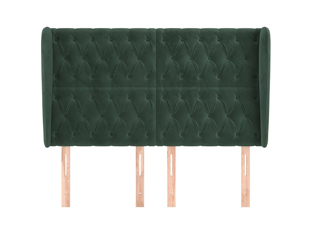 Cabecero | Cabezal de Cama | Mueble cabecero con orejas de terciopelo verde oscuro 147x23x118/128cm