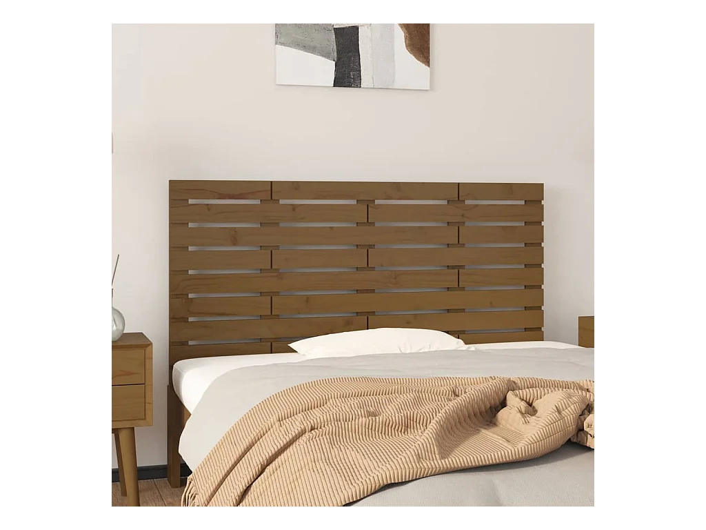 Cabecero de Cama | Cabezal de cama | Mueble de cabecero madera maciza de pino marrón miel 132x3x81cm
