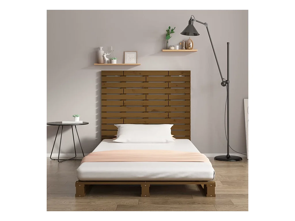 Cabecero de Cama | Cabezal de cama | Mueble de cabecero madera maciza de pino marrón miel 146x4x104 cm