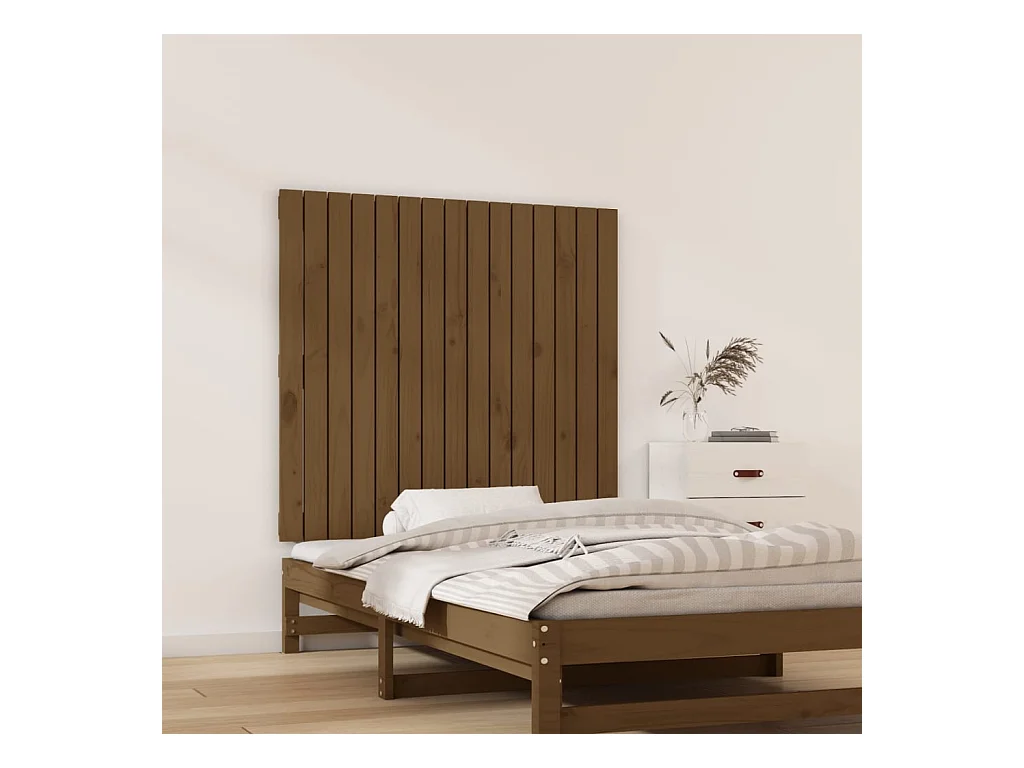 Cabecero cama | Cabezal de cama | Mueble de cabecero pared madera maciza pino marrón miel 95,5x3x80 cm