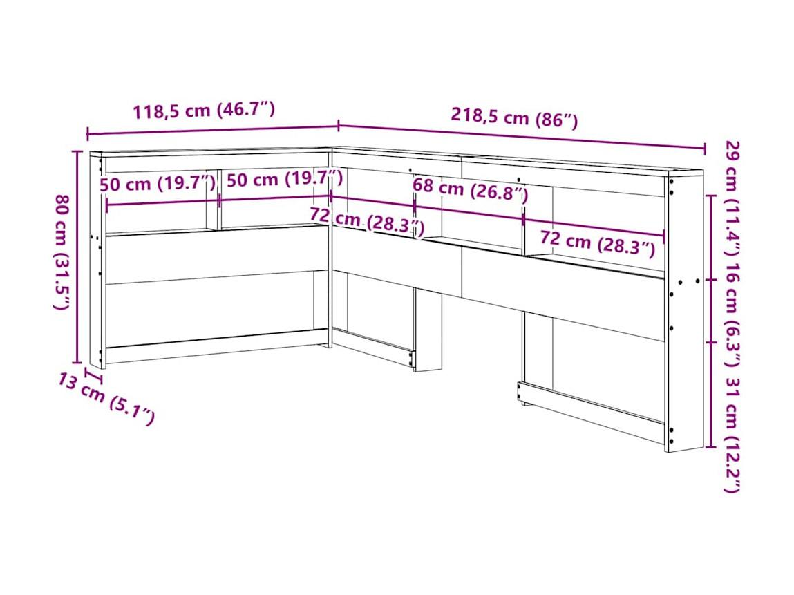 Cabecero cama estantería forma L marrón encerado 100 cm
