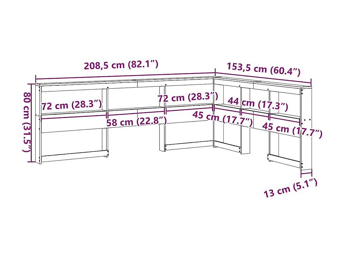 Cabecero cama estantería forma L marrón encerado 135 cm