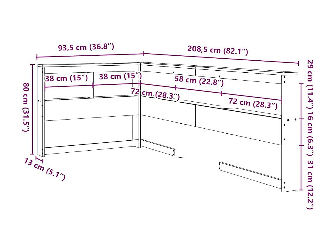 Cabecero cama estantería forma L marrón encerado 75 cm