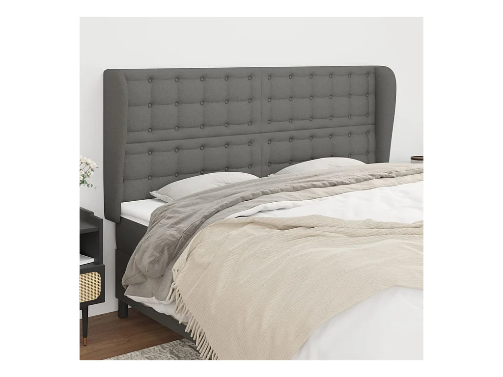 Cabecero con alas Gris oscuro 163x23x118/128 cm Tela