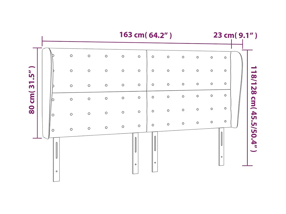Cabecero con alas Gris oscuro 163x23x118/128 cm Terciopelo