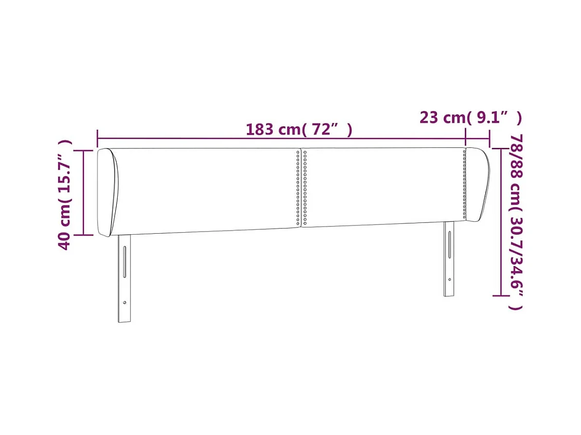 Cabecero con alas Negro 183x23x78/88 cm Terciopelo