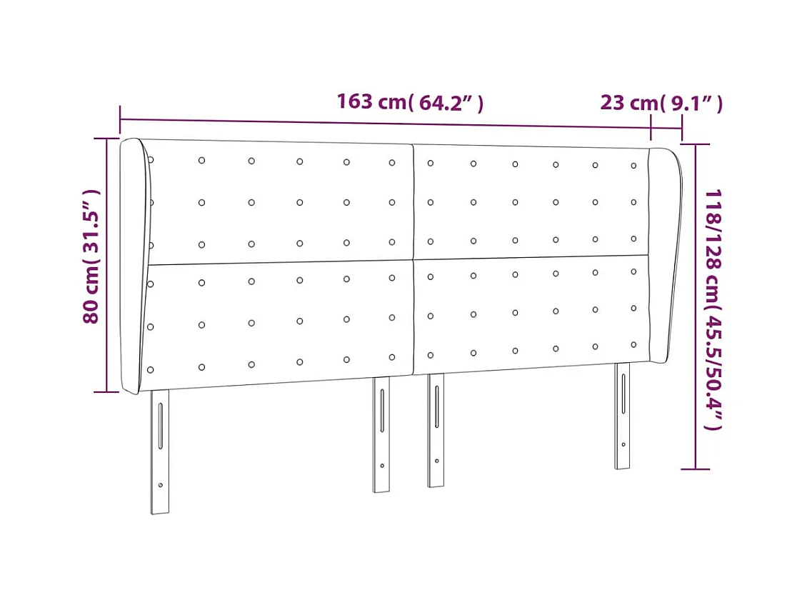 Cabecero con alas Verde oscuro 163x23x118/128 cm Terciopelo