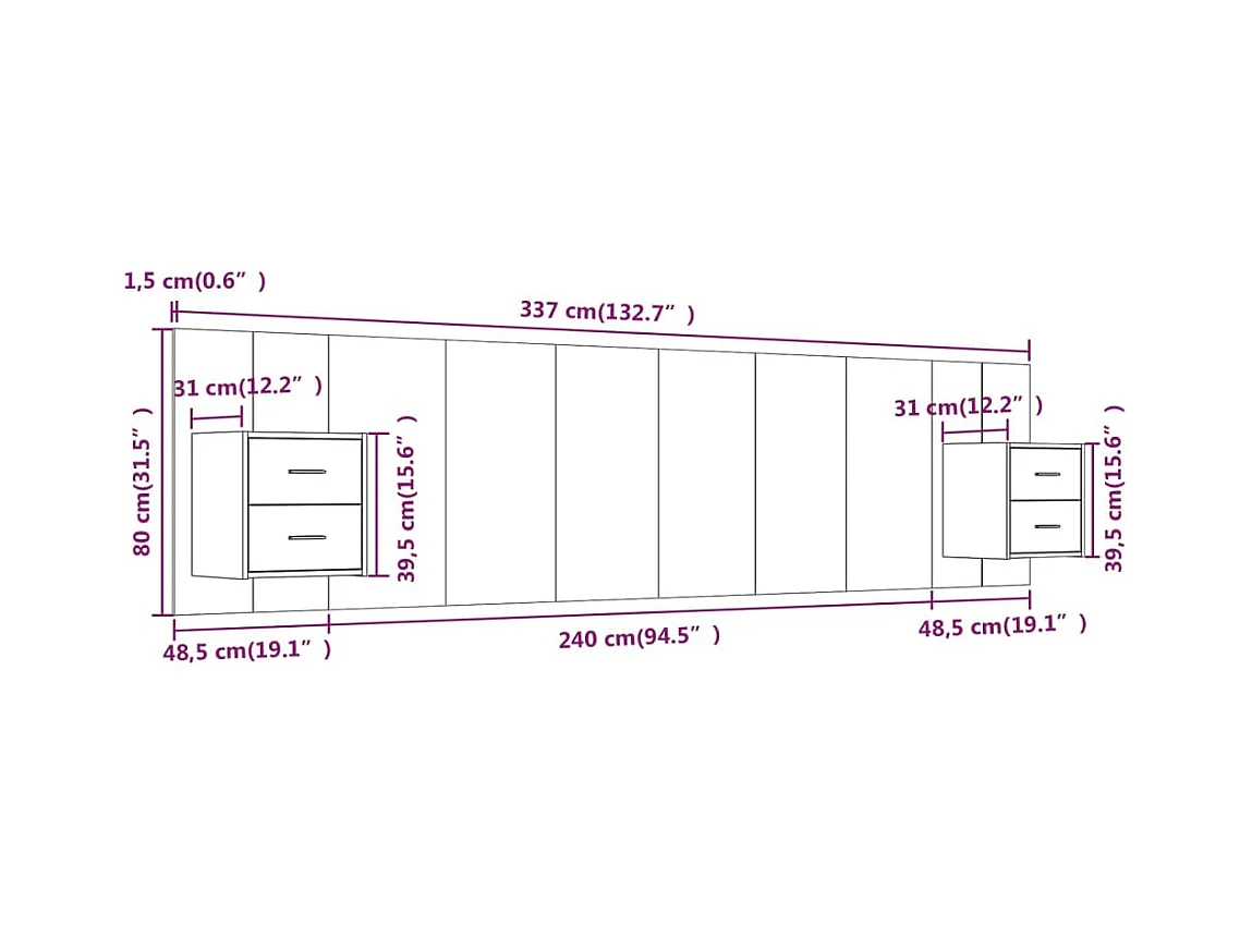 Cabecero con armarios Roble ahumado Madera de ingeniería
