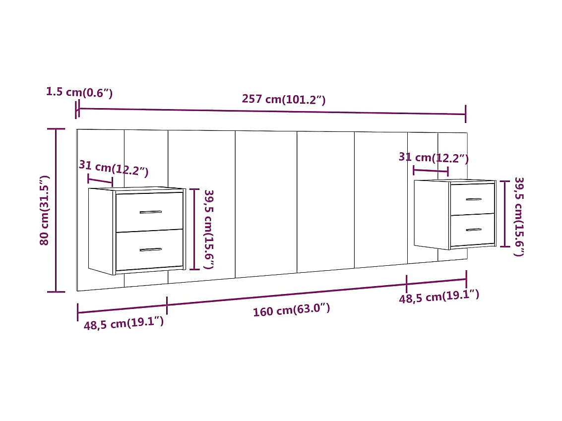 Cabecero con armarios Roble Sonoma Madera contrachapada