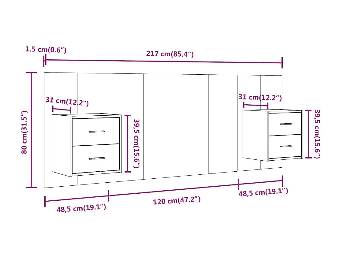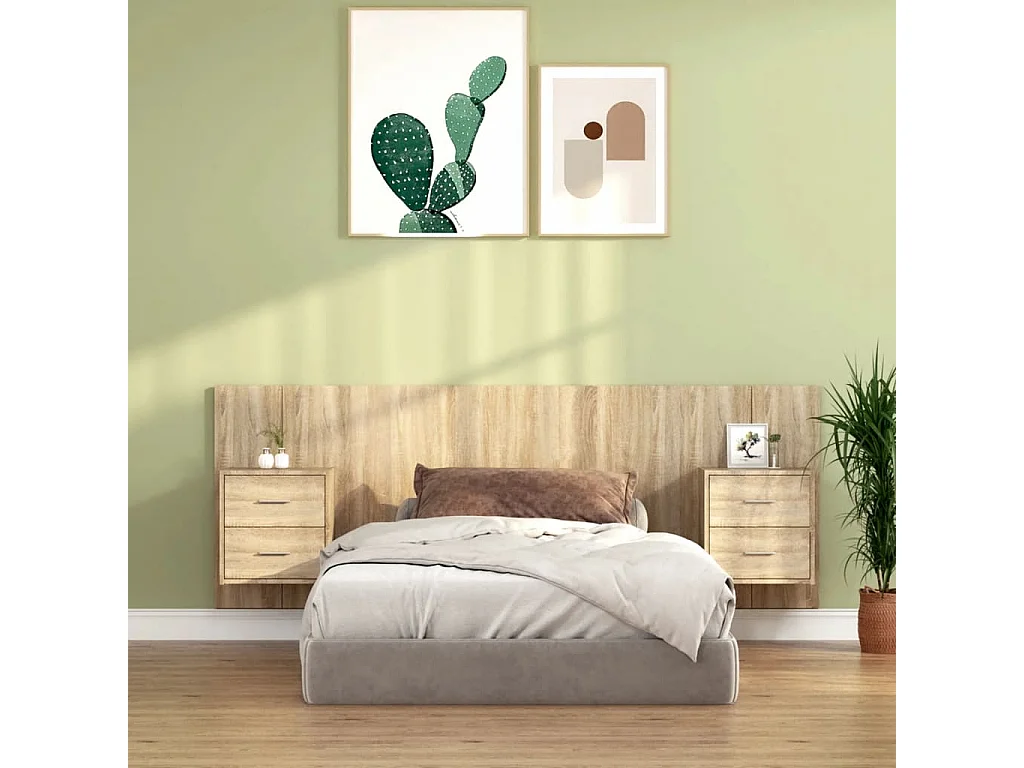 Cabecero de cama con mesitas madera contrachapada roble Sonoma