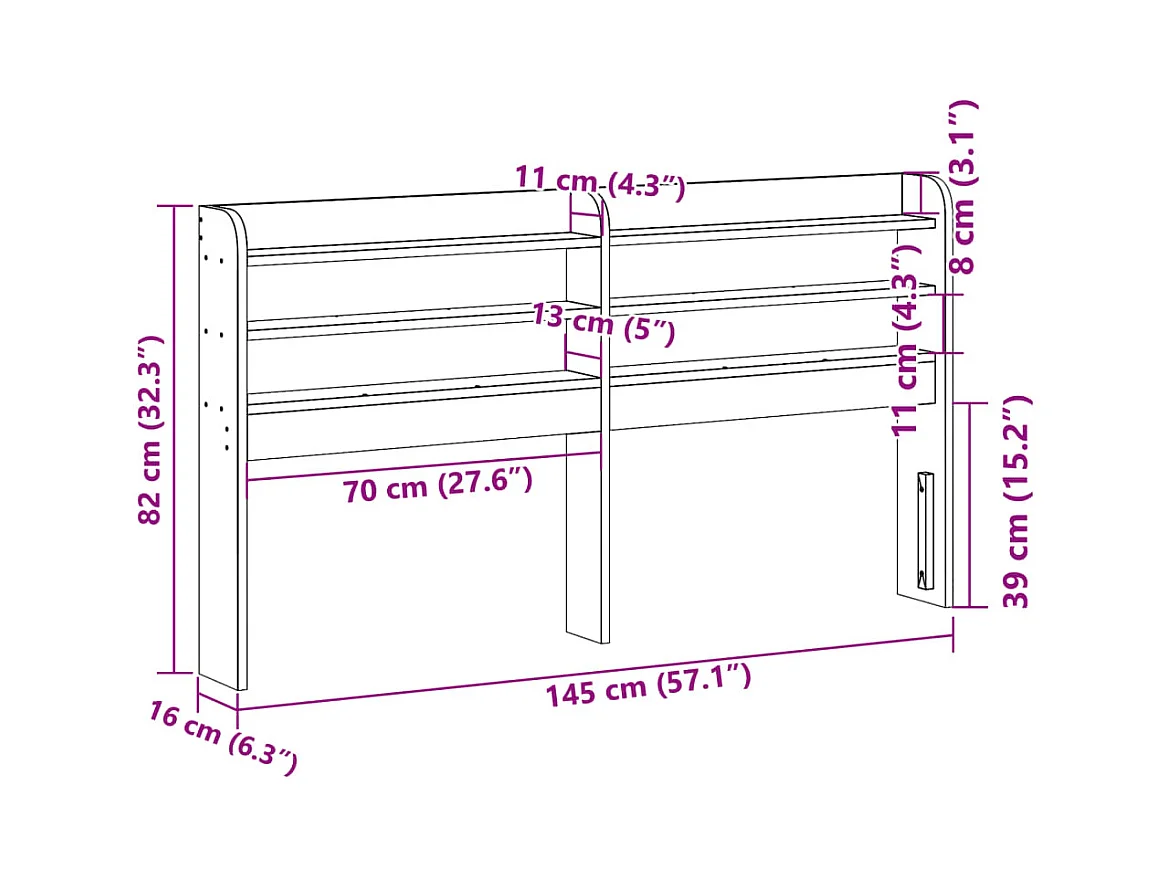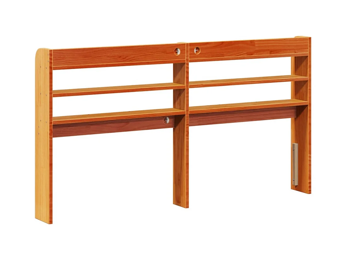 Cabecero con estantes, marrón cera, 135 cm, madera maciza de pino