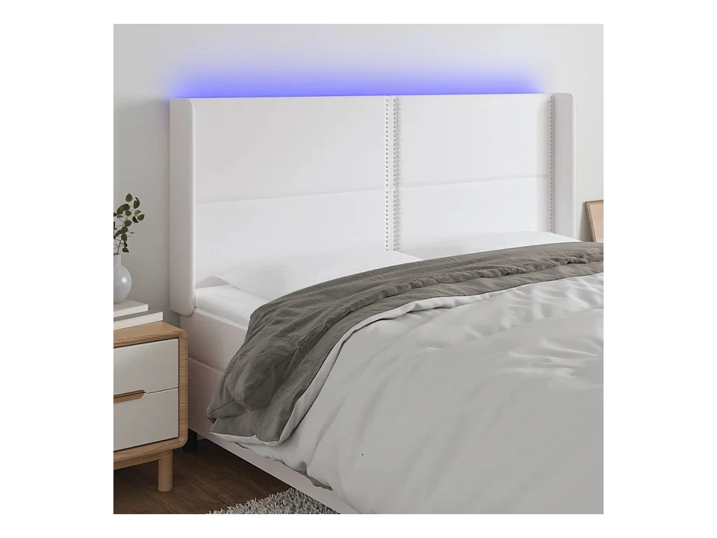 Cabecero con luces LED cuero sintético blanco 200x5x118/128 cm ES12202