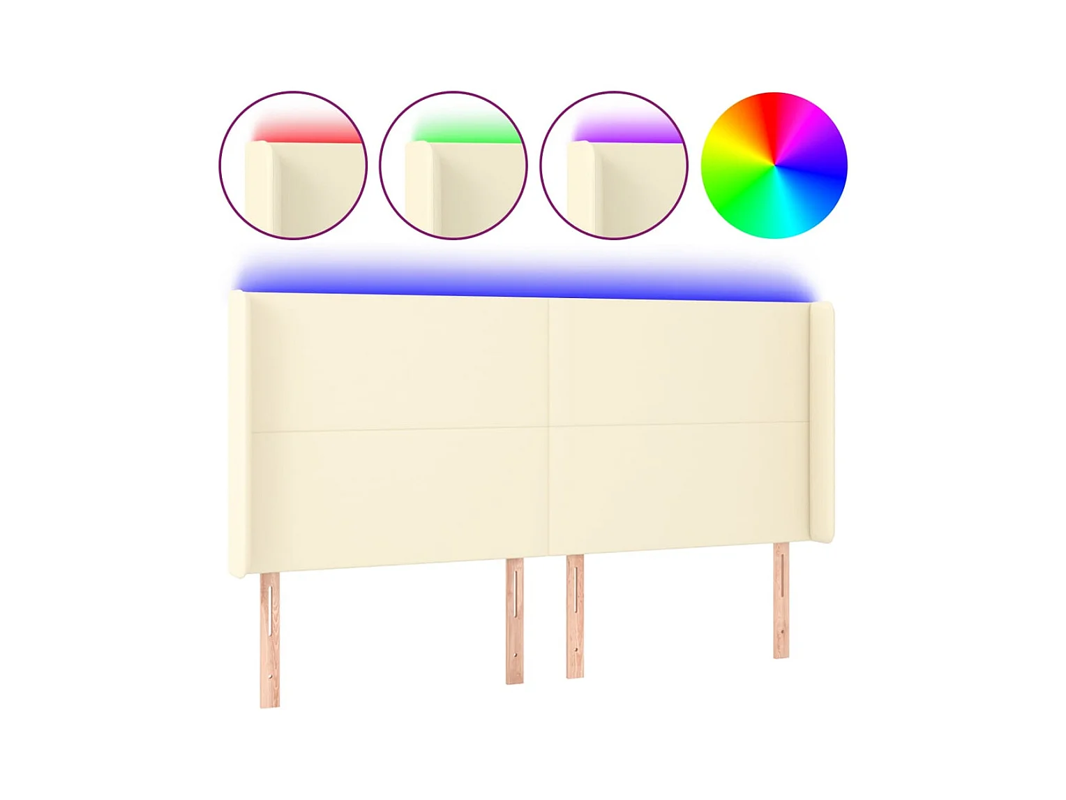 Cabecero con LED cuero sintético color crema 183x16x118/128 cm