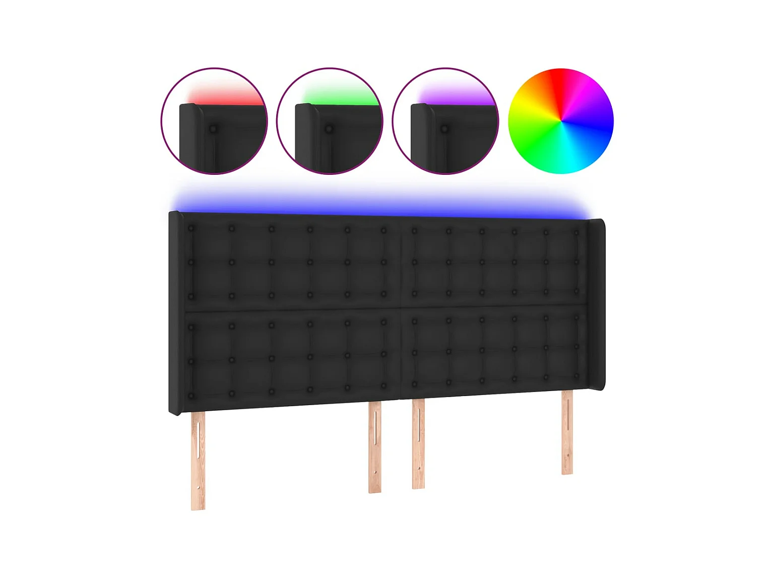 Cabecero con LED cuero sintético negro 163x16x118/128 cm ES18322