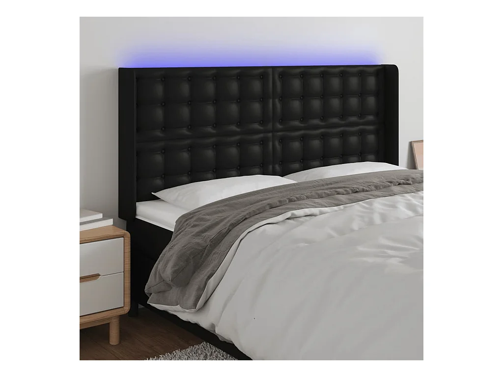Cabecero con LED cuero sintético negro 147x16x118/128 cm ES83071