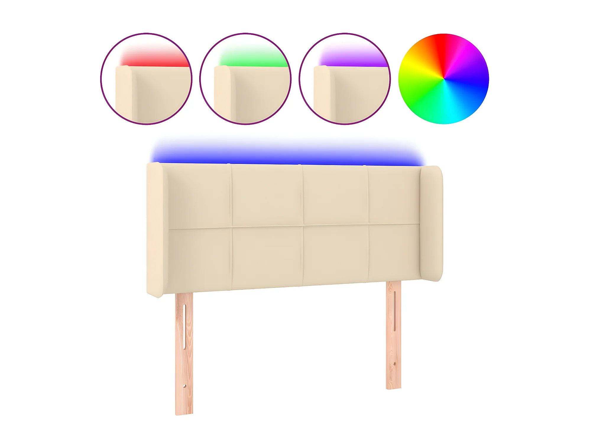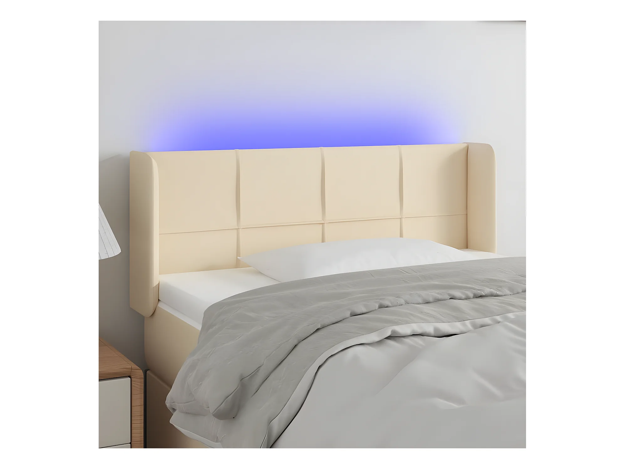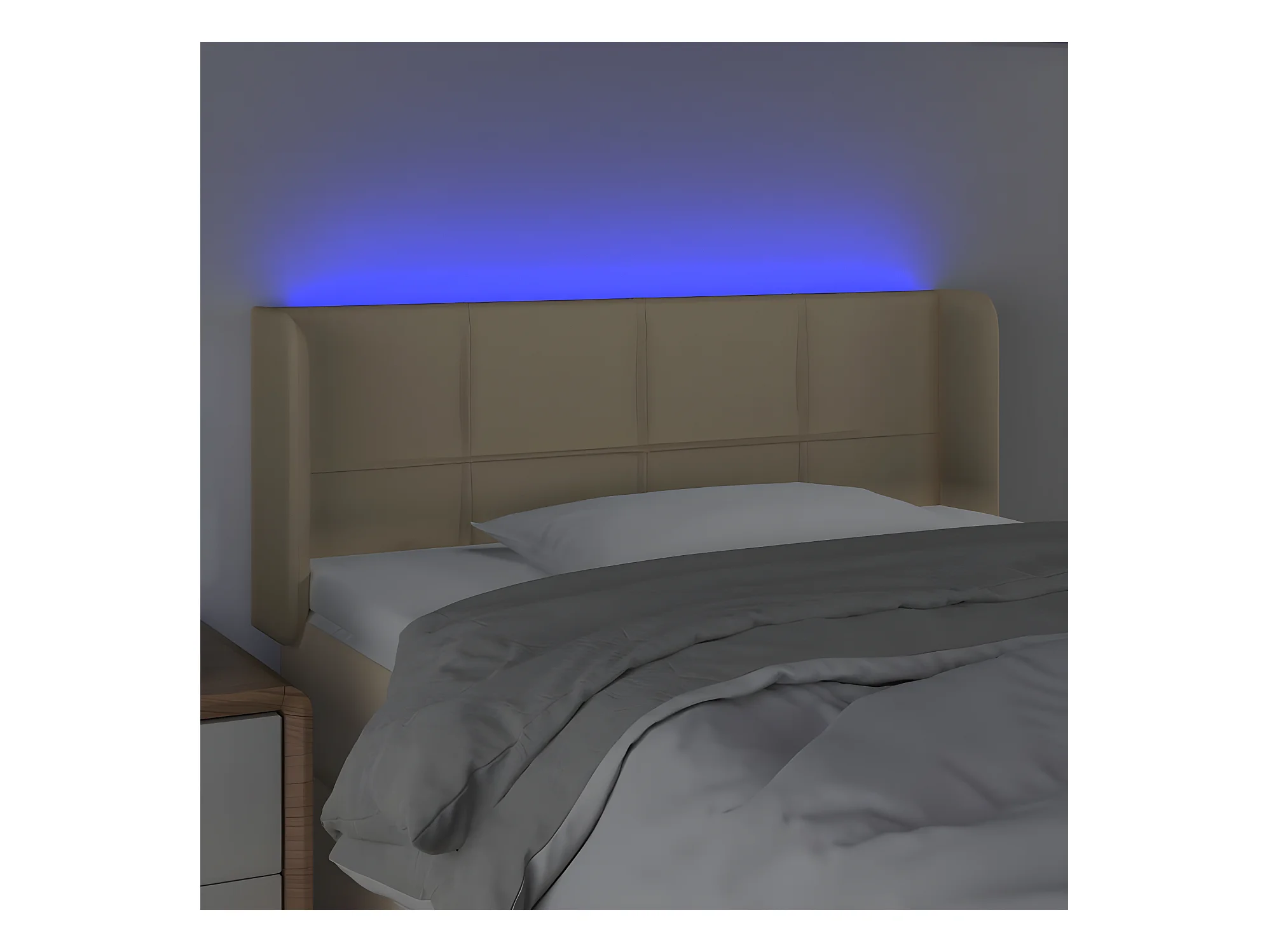 Cabecero con LED de tela color crema 103x16x118/128 cm ES58125