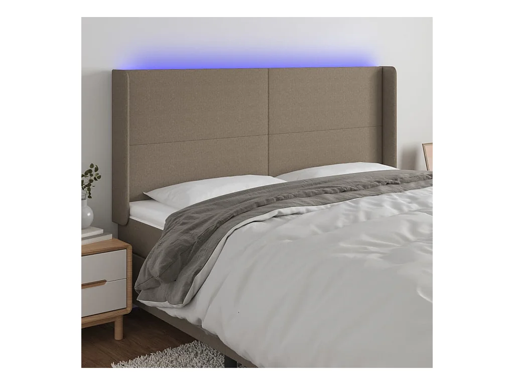 Cabecero con LED de tela gris taupe 183x16x118/128 cm ES18628