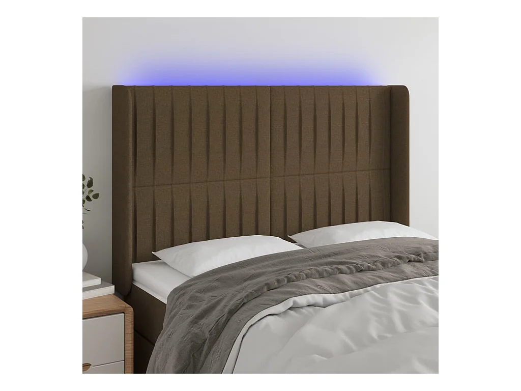Cabecero con LED de tela marrón oscuro 147x16x118/128 cm ES25173