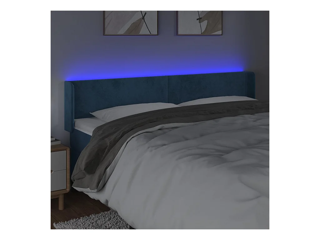 Cabecero con LED de terciopelo azul oscuro 203x16x78/88 cm ES86070