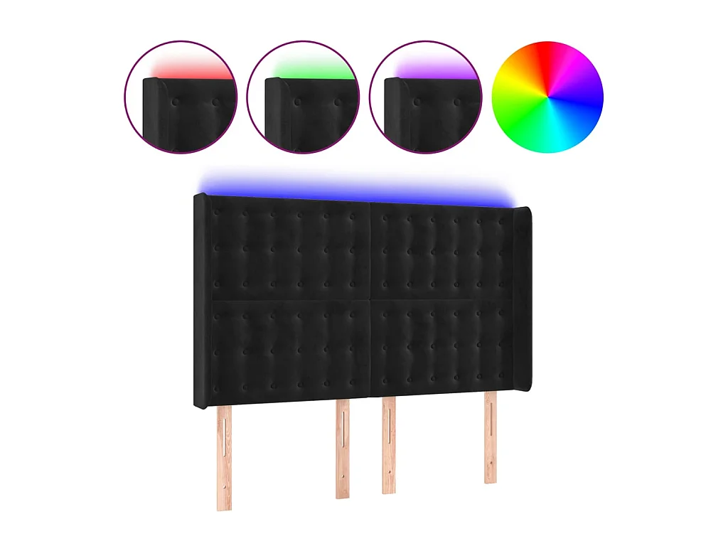 Cabecero con LED de terciopelo negro 147x16x118/128 cm ES66773