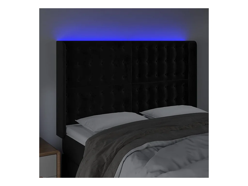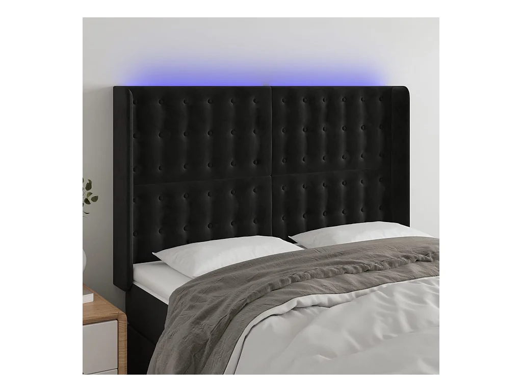 Cabecero con LED de terciopelo negro 147x16x118/128 cm ES79721