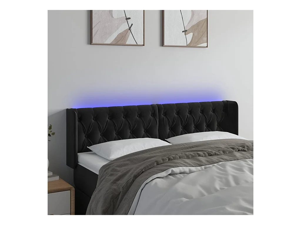 Cabecero con LED de terciopelo negro 147x16x118/128 cm ES66773
