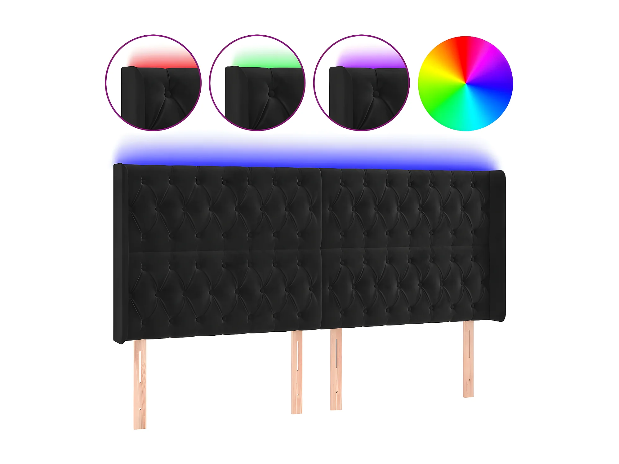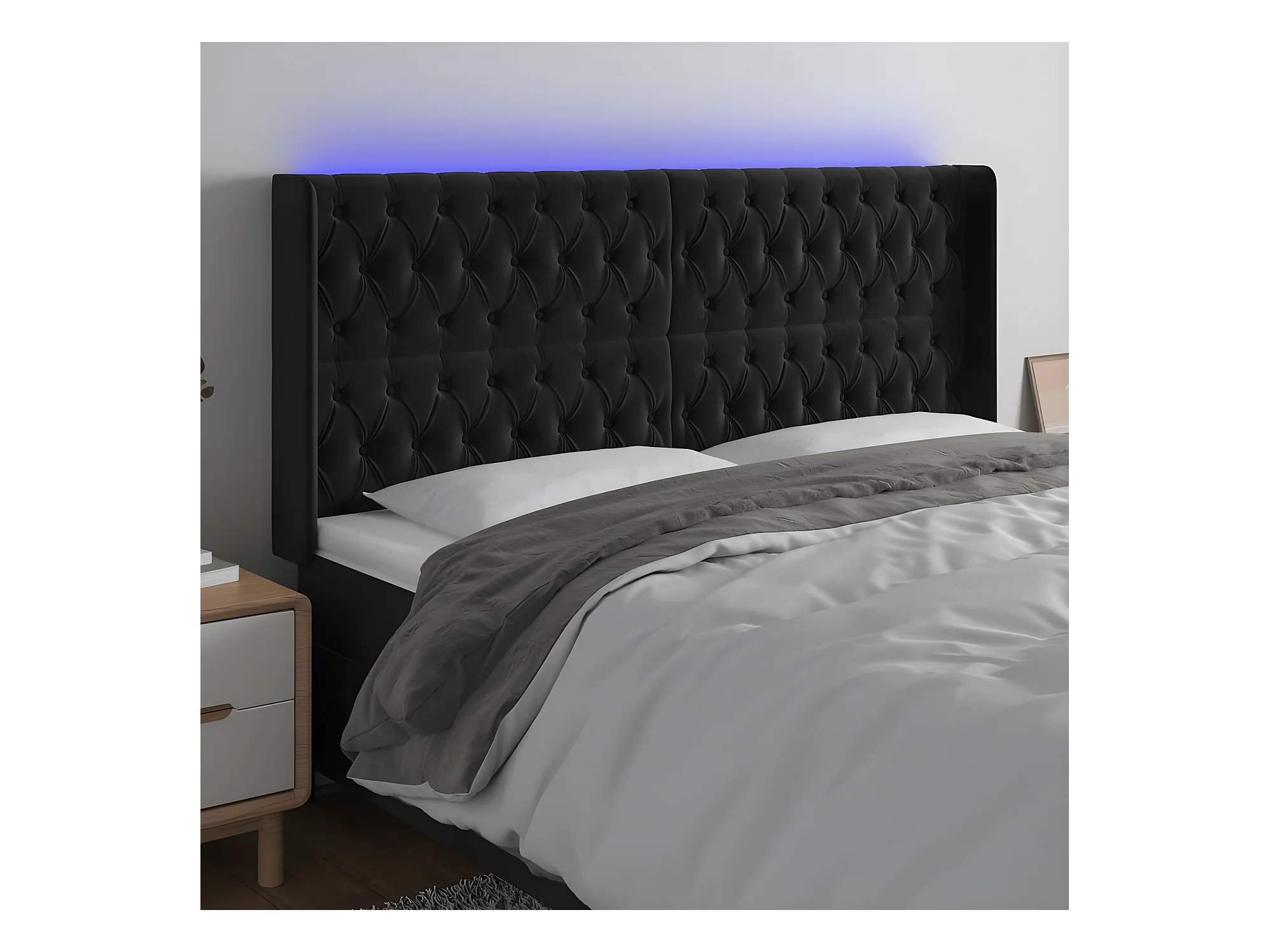 Cabecero con LED de terciopelo negro 183x16x118/128 cm ES55033