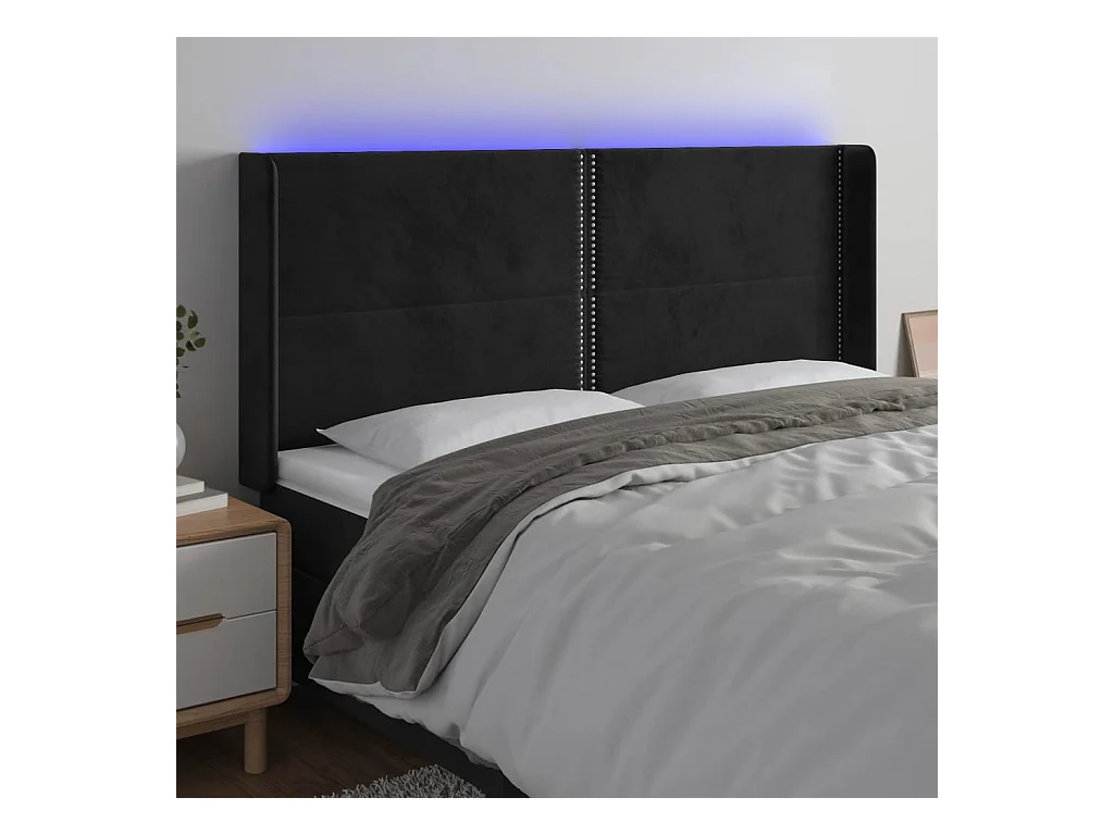 Cabecero con LED de terciopelo negro 183x16x118/128 cm ES83539