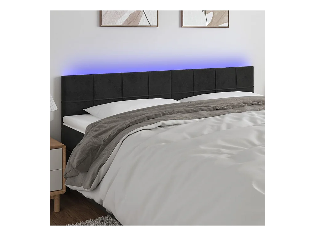 Cabecero con LED de terciopelo negro 180x5x78/88 cm ES69753