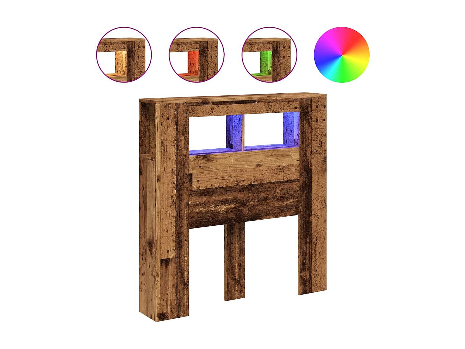 Cabecera con LED con estante Madera vieja 120 x 17 x 102 cm