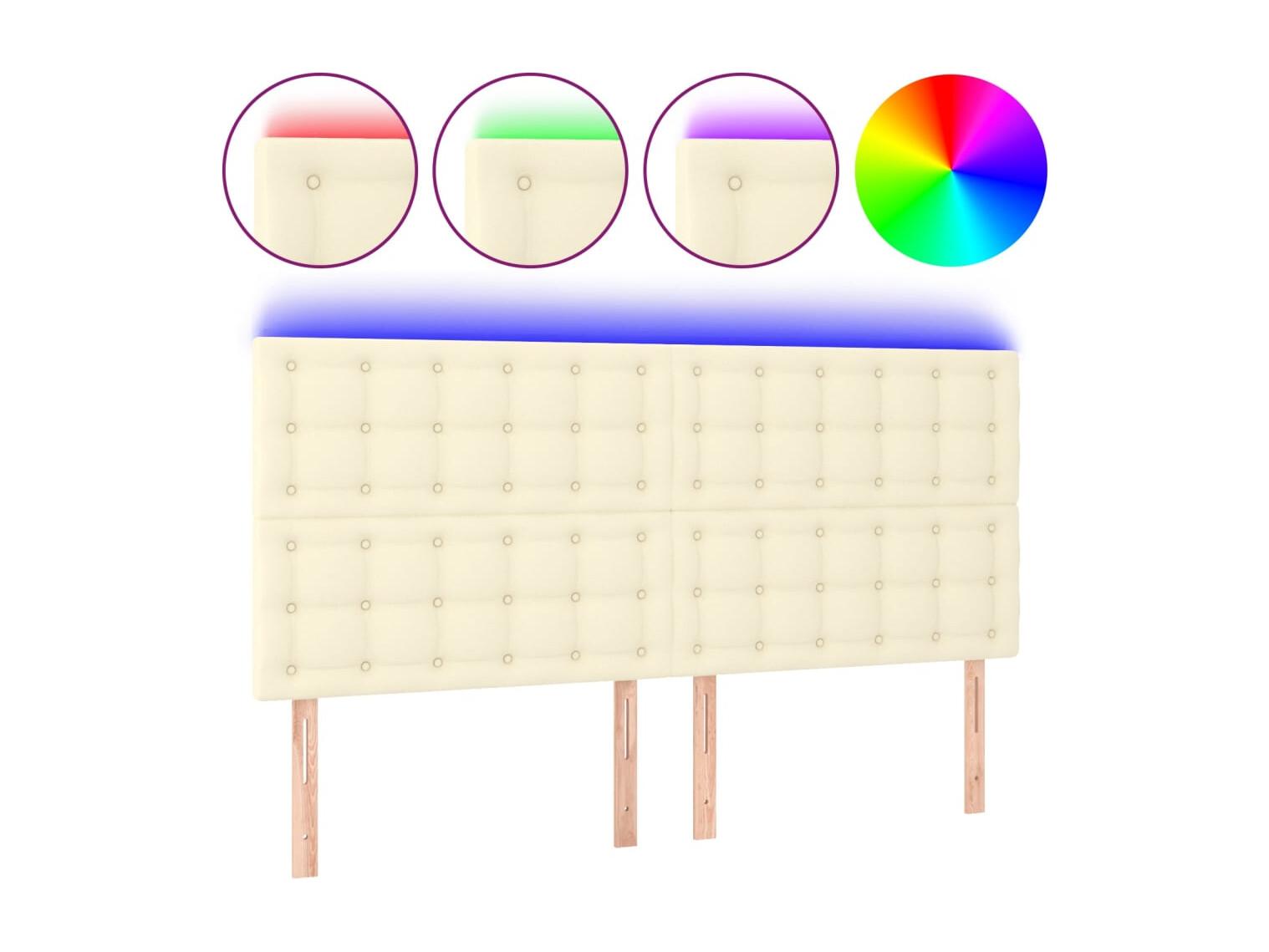 Cabecero con LED cuero sintético color crema 203x16x118/128 cm